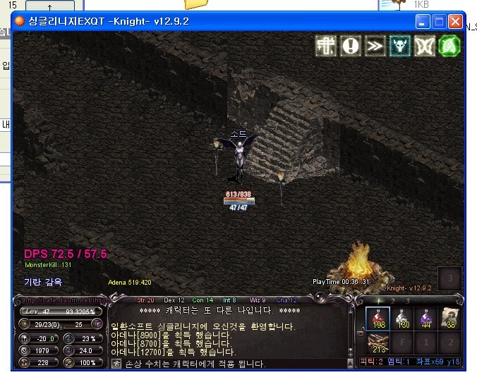 다크렙까지 2시간 45분 ㅋㅋ 사실 다른거 안하고 초반에 6수단후 기감 바로 입장해서 광렙만 한다면 2시간도 안되서