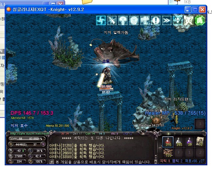 1억 모아서 이뮨을 구입하기 위해 다시 지저 호수로 ㅋㅋ 아덴 노가다중 렙업을 했네요
