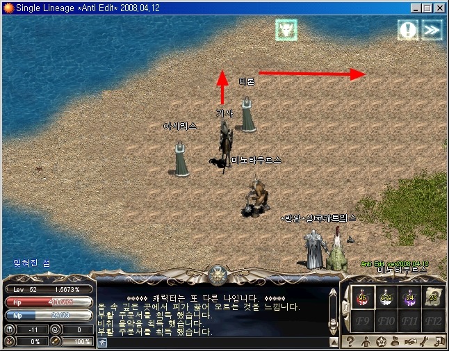 2. 실버나이트를 끌고 아시리스, 티론 사이로 몰고 올라간 후 우측으로 가세요.