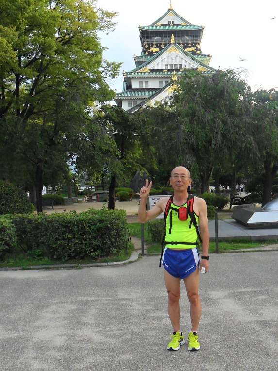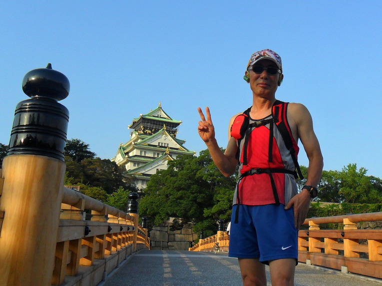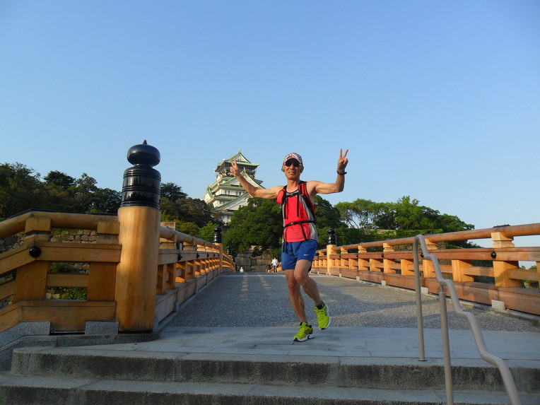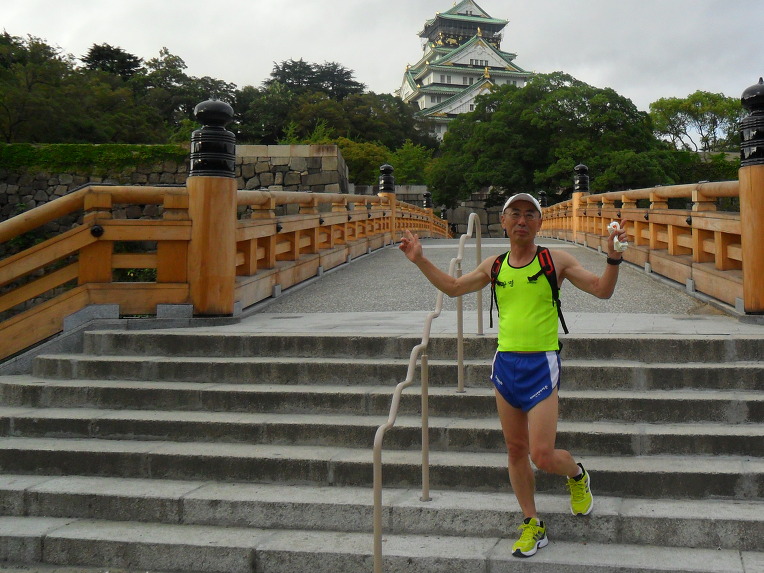 새벽에 연속으로 오사카 성에 마라톤 연습을 하러가서 도톰보리 마라톤 청년에 자세를 흉내냈습니다