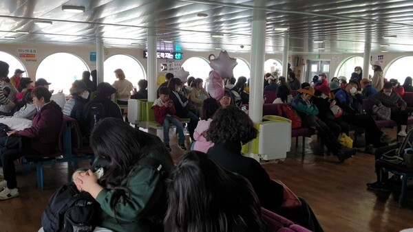 16일 오전, 장봉도 선착장에는 벚꽃축제를 기다리는 많은 사람들이 모여 있었다. 늘 몇 명안되는 승객이 탄 카패리였는데 이날은 앉을 자리를 찾기 어려울 정도로 승객이 많았다. 각자 자리를 잡은 사람들은 부산스럽게 이야기보따리를 풀어 놓는다. 8시 정각이 되자 배가 출발하며, 손님들은 장봉도에서 열리는 벚꽃 축제를 기대하며 여행을 시작했다.
