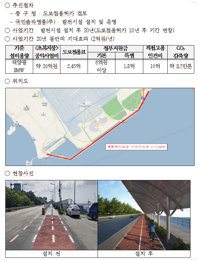 영종해안남로 자전거도로 내 태양광 시설 설치 관련 주민설명회 개최(3월30일 오후3시) 작성자영종정보,소식|작성시간26.03.25|조회수66 목록 댓글 0 글자크기 작게가 글자크기 크게가 영종해안남로 자전거도로 내 태양광 시설 설치 관련 주민설명회 개최(3월30일 오후3시)https://naver.me/GzdQdDmF영종해안남로 자전거도로 내 태양광 시설 설치 관련 주민설명회 개최(3월30일 오후3시)최근 영종해안남로 자전거도로 구간에 태양광 발전시설을 설치하는 계획이 추진되면서 주민들의 관심이 높...blog.naver.com 다음검색 현재 게시글 추가 기능 열기 북마크 공유하기 신고 센터로 신고 댓글 댓글 0 댓글쓰기 답글쓰기 댓글 리스트