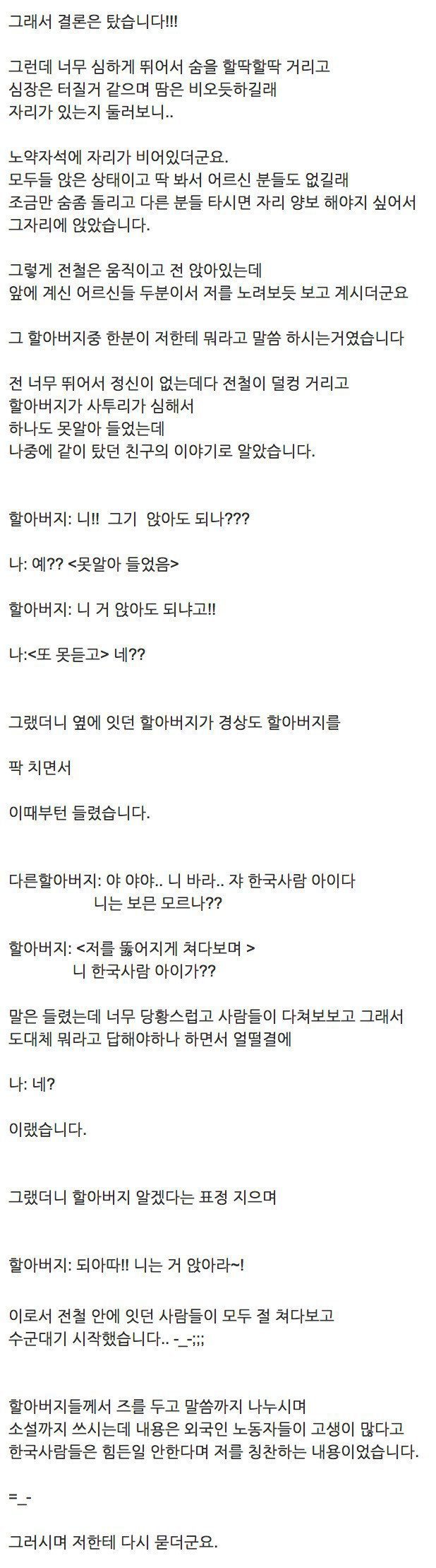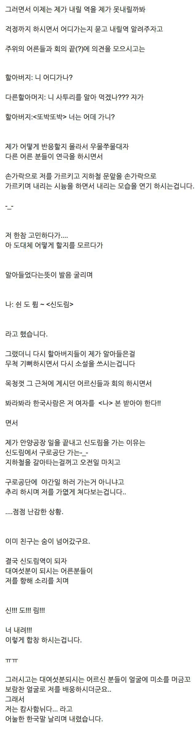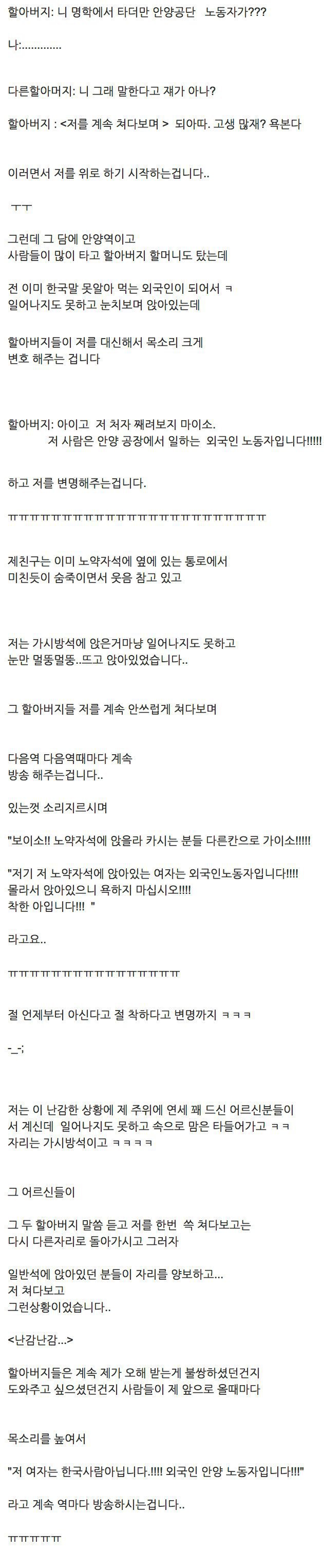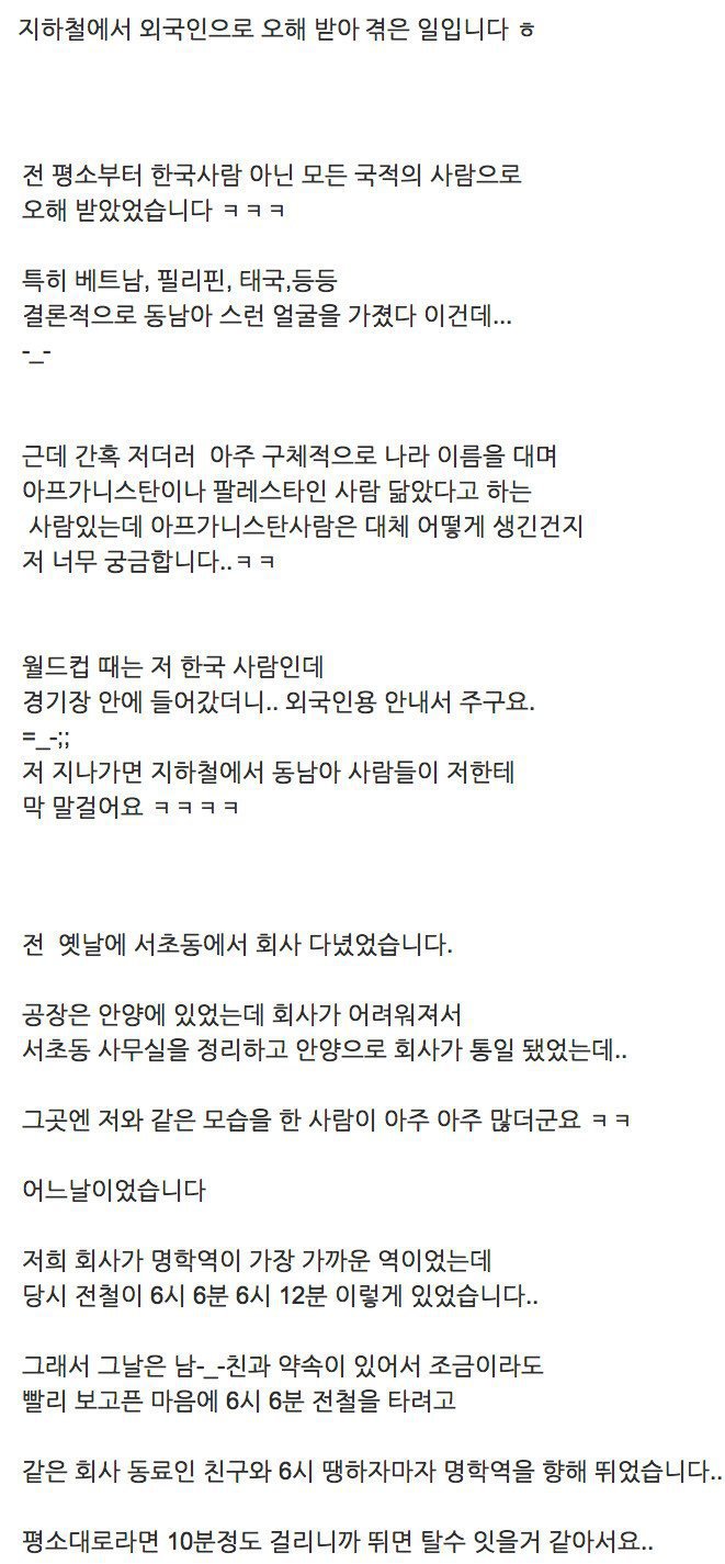 지하철에서 외국인으로 오해받은 썰 작성자플라밍고|작성시간19.10.25|조회수1,160 목록 댓글 0 글자크기 작게가 글자크기 크게가 . 다음검색 현재 게시글 추가 기능 열기 북마크 공유하기 신고 센터로 신고 댓글 댓글 0 댓글쓰기 답글쓰기 댓글 리스트
