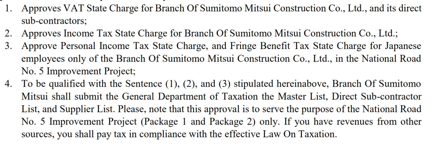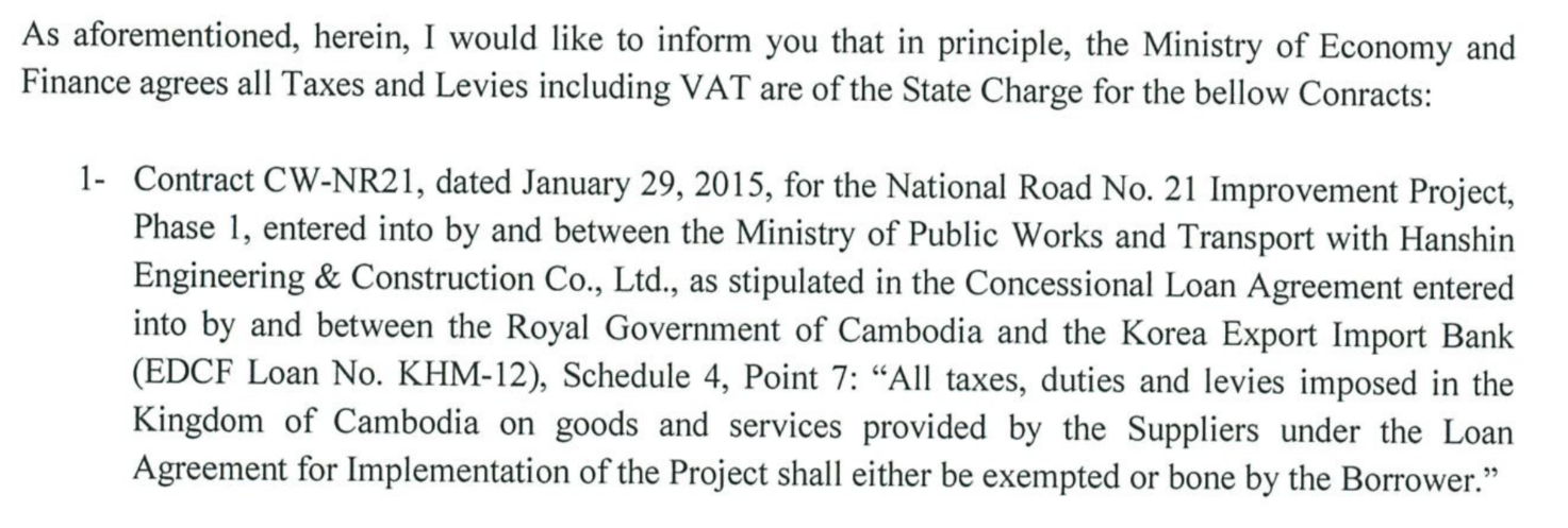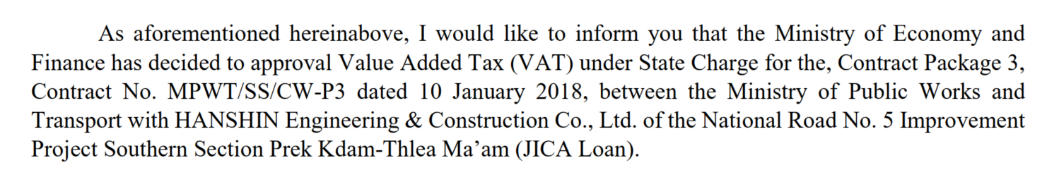 캄보디아 재경부(MEF: Ministry of Economy and Finance)에서 EDCF와 JICA 재원의 면세 인정 사례 자료 입니다.