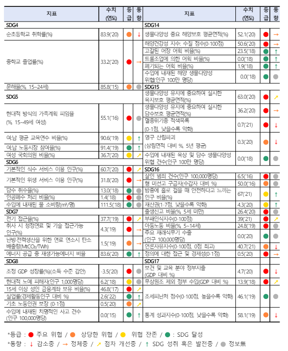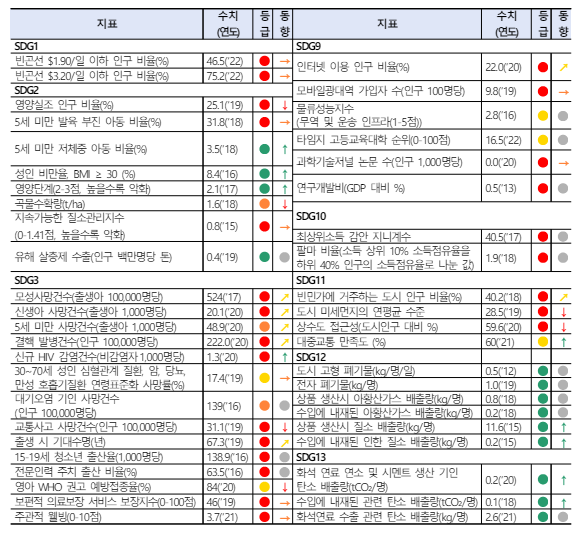 - SDGS 이행 랭킹 : 130위(163개국 중)