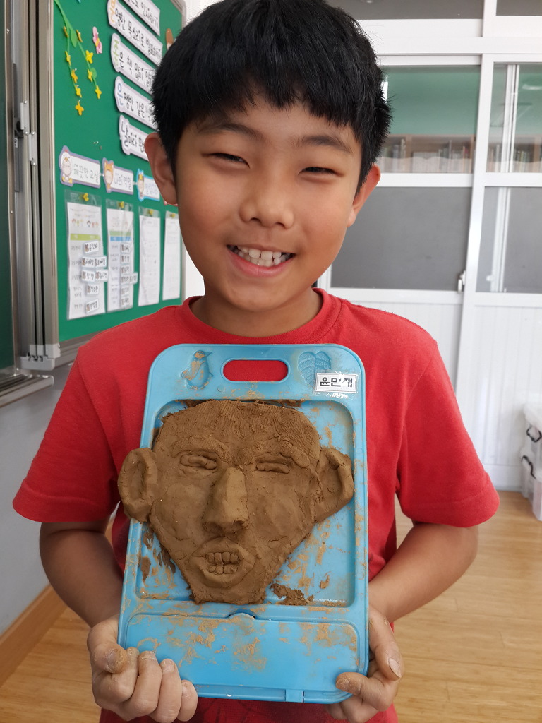 [4학년]찰흙으로 내 얼굴 만들기(5.28) 작성자최명아샘|작성시간15.05.29|조회수576 목록 댓글 3 글자크기 작게가 글자크기 크게가 미술시간에 찰흙을 이용한 부조작품 만들기를 하였답니다.손거울로 자신의 얼굴을 뚫어져라 관찰하더니 어느덧 쪼물락쪼물락자신과 쏘~옥 닮은 찰흙작품을 만들었네요.어때요?아이들과 많이 닮았나요?^^ 다음검색 현재 게시글 추가 기능 열기 북마크 공유하기 신고 센터로 신고 댓글 댓글 3 댓글쓰기 댓글 리스트 작성자교감선생님 | 작성시간 15.05.29 영훈이 작품은 봉침을 맞았을 때의 모습을 표현했군요.... 작성자민재성재맘 | 작성시간 15.05.31 이럴수가 닮은듯 닮지않은 닮은꼴 작성자정의정 | 작성시간 15.06.16 우와 다들 닮았다 댓글 전체보기