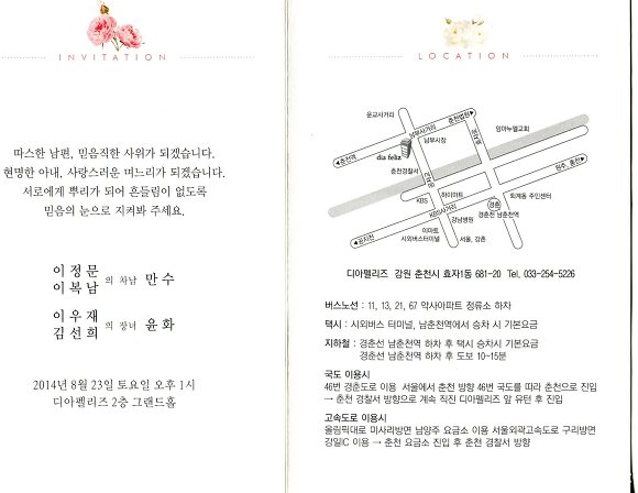 장소: 춘천 효자동 디아펠리즈 2층 그랜드홀 (구, 행복예식장)