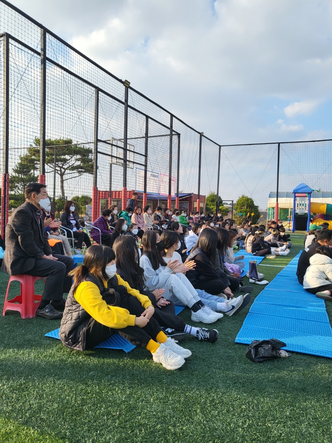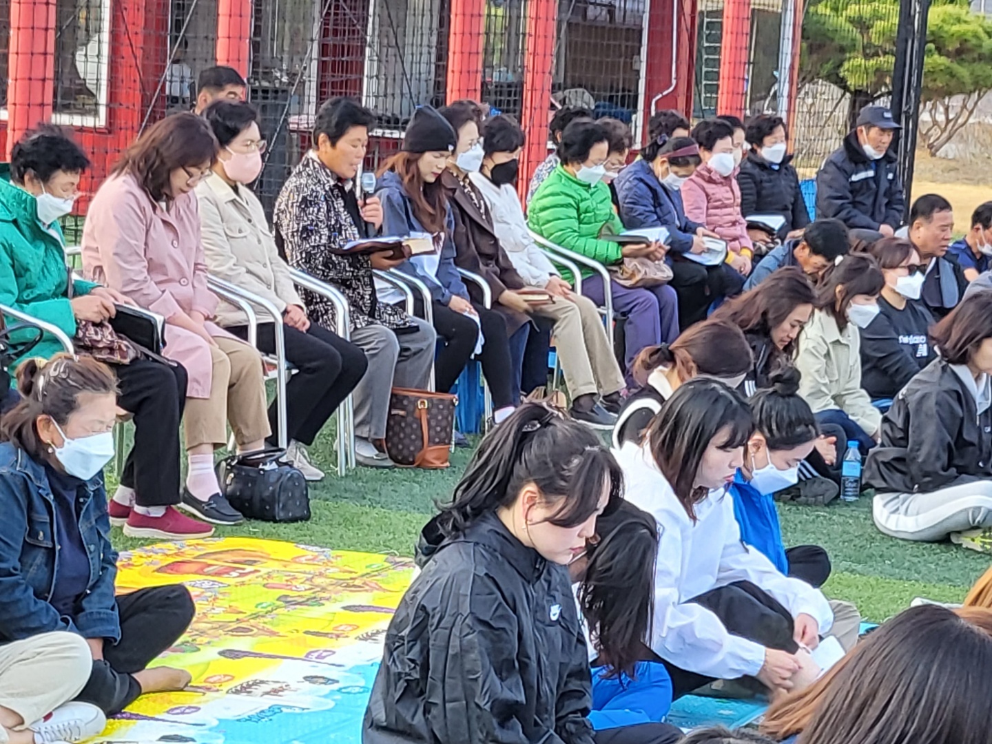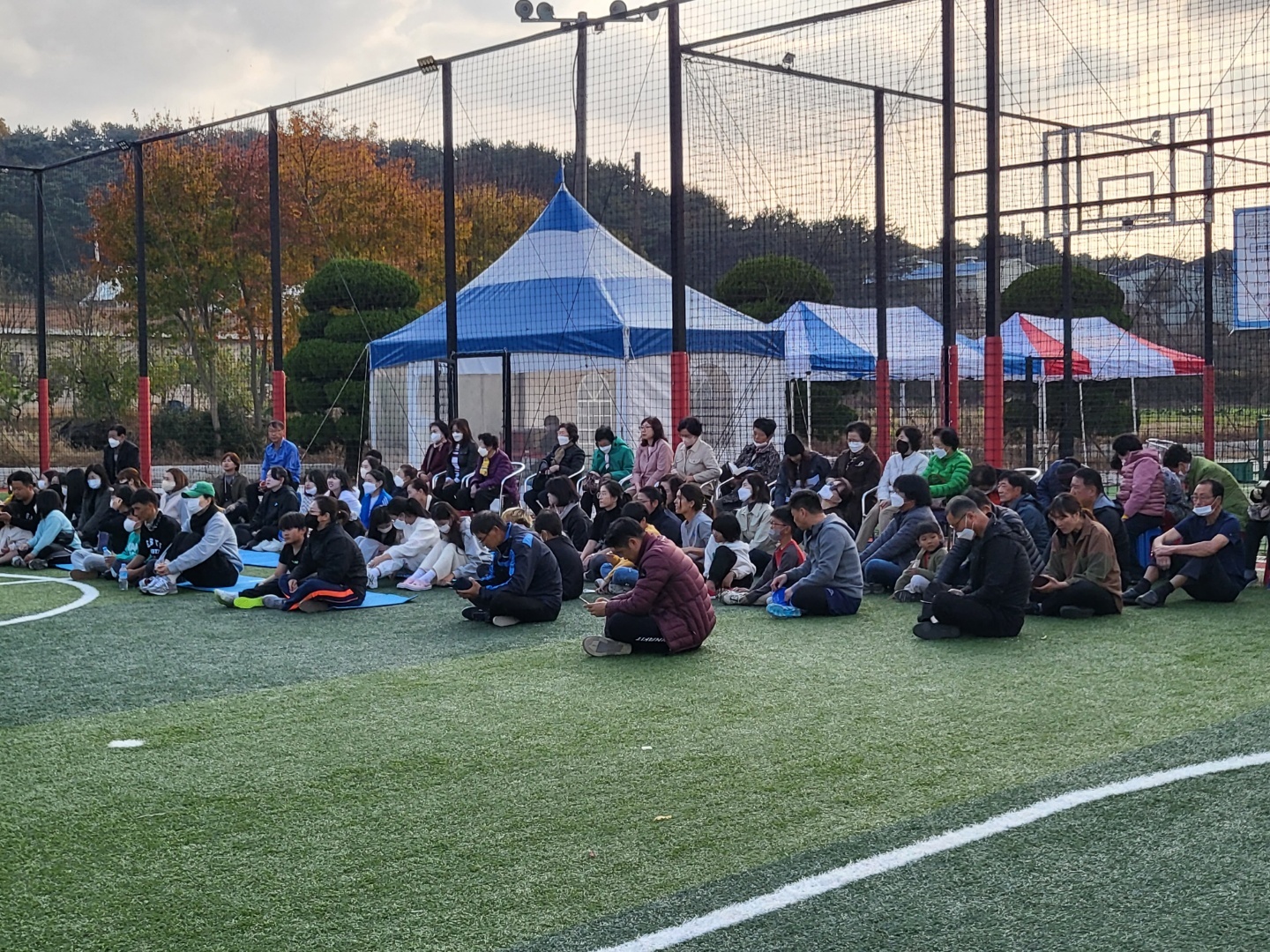 풋살장에서의 전교인 야외예배