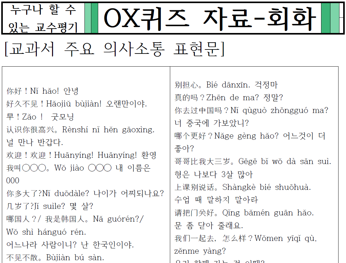 사전 단계 (1-20차시): 수업 전반 5분씩 회화문 및 문화 간단 학습