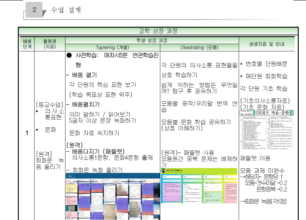 본차시 - 1차시: 1) 회화문 녹음하여 발표하기 2) 문화+회화 관련 학생 주도 문항 만들기
