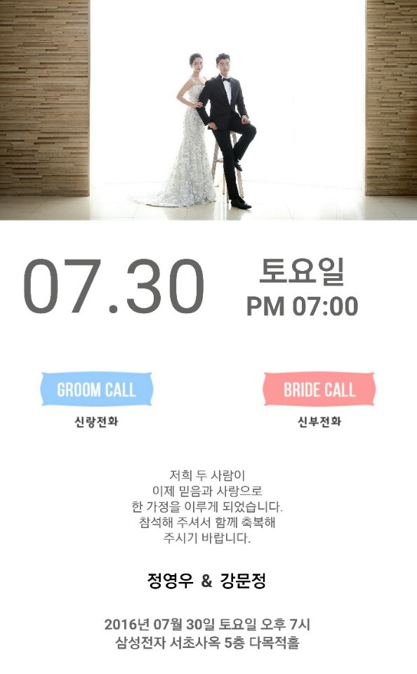 *. 혼주 전화: 강웅지 01056091047