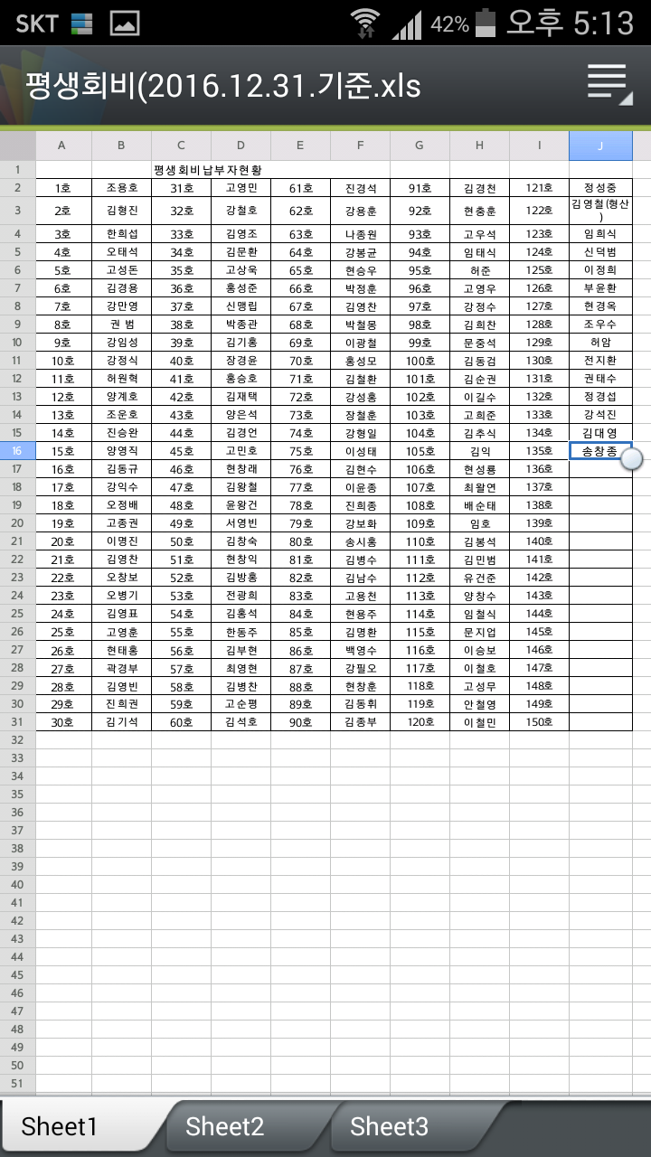 제주일고23회 동창회 평생회비 납부현황(2016.12.31.기준) 작성자고영우|작성시간17.01.04|조회수212 목록 댓글 0 글자크기 작게가 글자크기 크게가 동창회 평생회비 납부현황(2016년 12월 31일 기준입니다. 평생회비(2016.12.31기준).xlsx 첨부파일첨부된 파일이 2개 있습니다. jpg 파일 mobile_uploaded_image.jpg 다운로드 xlsx 파일 평생회비(2016.12.31기준).xlsx 다운로드 다음검색 현재 게시글 추가 기능 열기 북마크 공유하기 신고 센터로 신고 댓글 댓글 0 댓글쓰기 답글쓰기 댓글 리스트