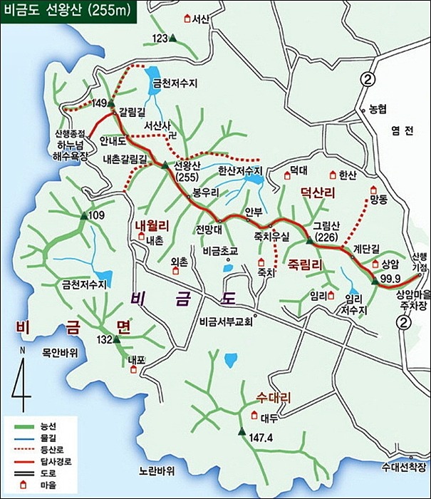 상암마을→그림산→죽치재→선왕상→내월우실재→하누넘해수욕장 5km 4시간