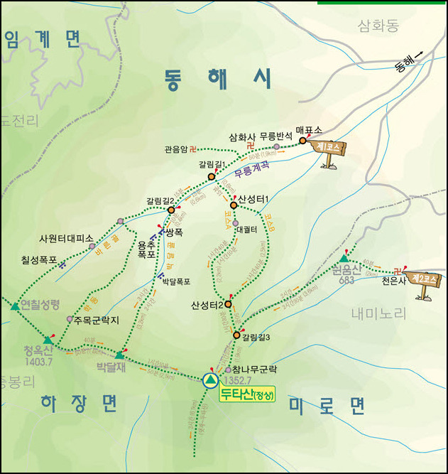 천은사→쉰음산→갈림김→두타산→갈림길→산성터→대궐터→주차장 12km, 5시간