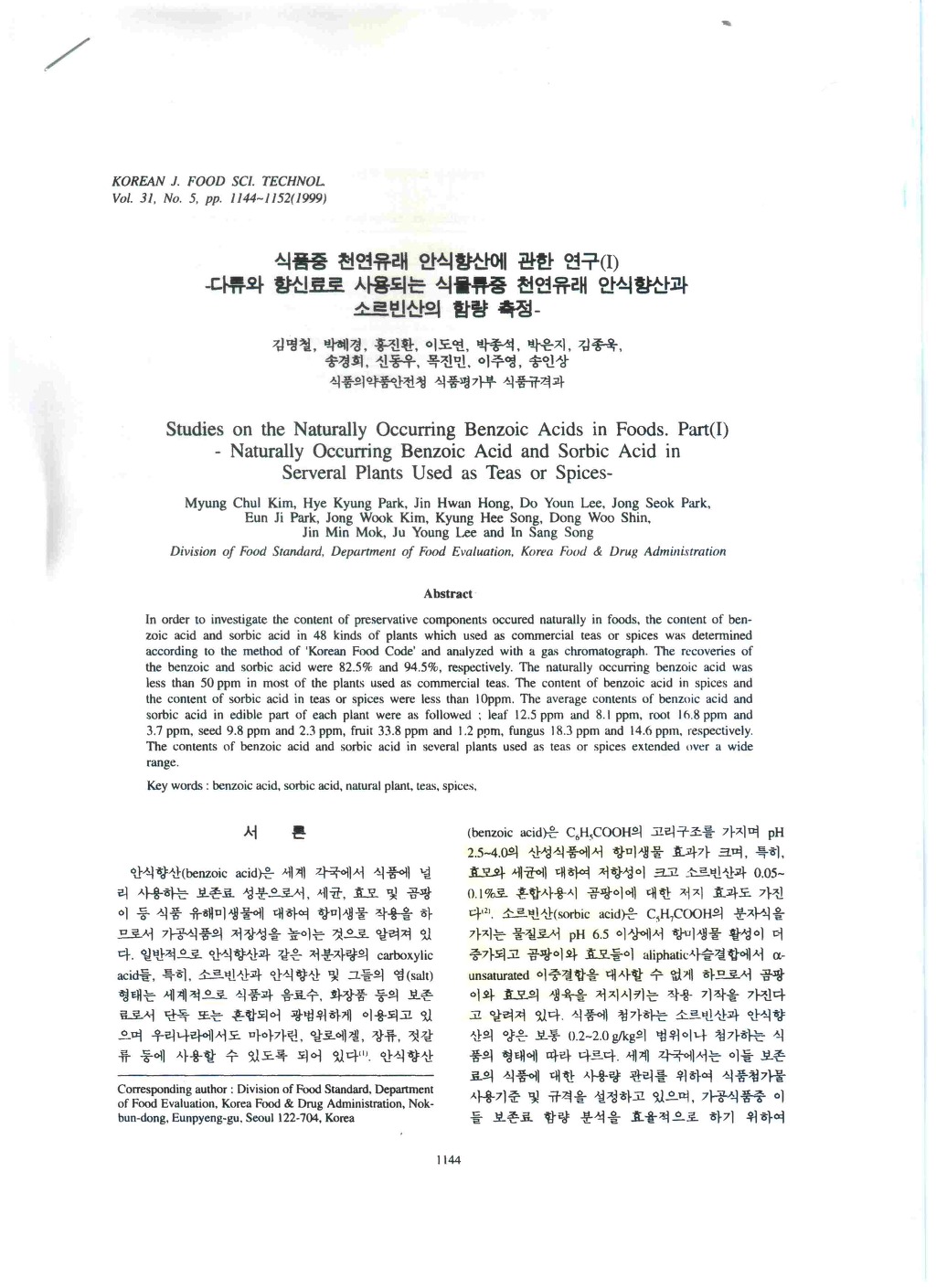 *** 식품에 함유된 천연유래 안식향산(benzoic acid)과 소르빈산(sorbic acid)에 대하여