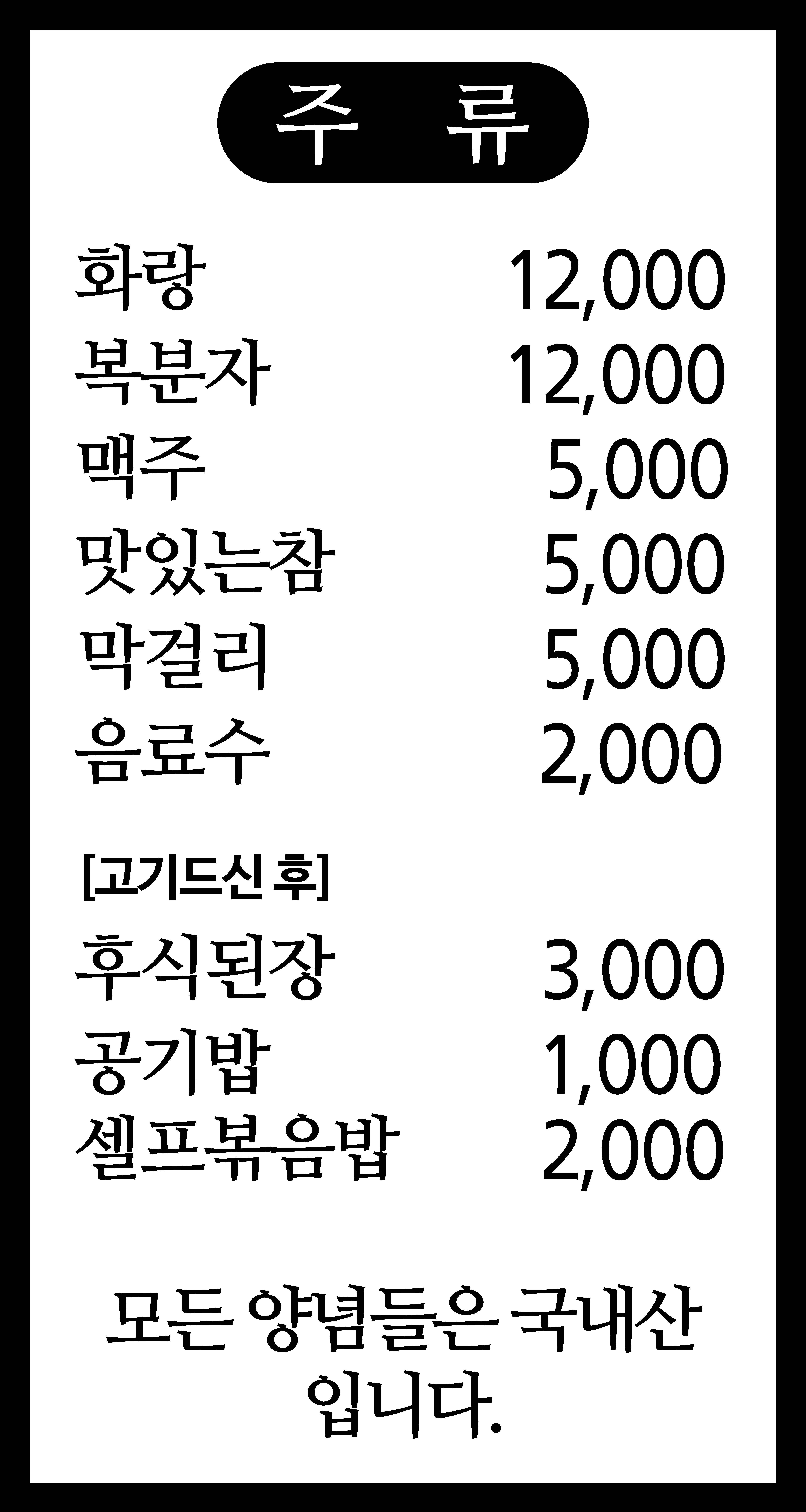 다마정 메뉴판 고기류외 2종...주류 수정 작성자프린토피아|작성시간25.10.16|조회수13 목록 댓글 0 글자크기 작게가 글자크기 크게가 다음검색 현재 게시글 추가 기능 열기 북마크 신고 센터로 신고 댓글 댓글 0 댓글쓰기 답글쓰기 댓글 리스트