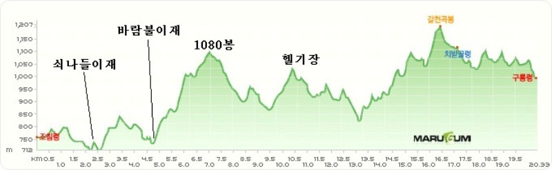 ▶ 갈전곡봉-968봉-연내골샘터갈림길-1061봉-바람불이삼거리 / 12.4km : 5시간 30분