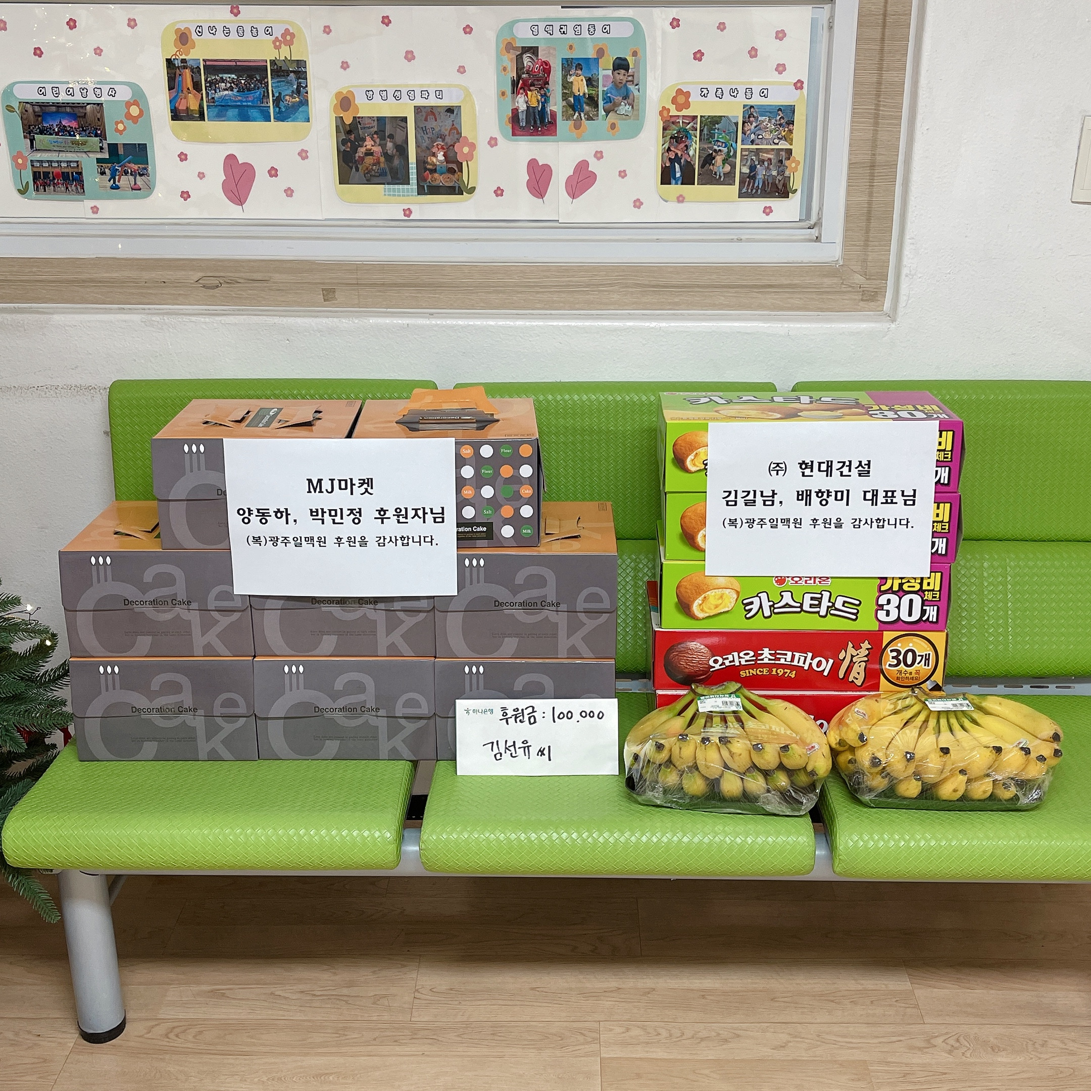 2025년 12월 24일 MJ마켓(박민정, 양동하), (주)현대건설(김길남, 배향미) 후원자님꼐서 간식 후원해주셨습니다^^ 작성자광주일맥원|작성시간18:42|조회수2 목록 댓글 0 글자크기 작게가 글자크기 크게가 감사합니다 : ) 다음검색 현재 게시글 추가 기능 열기 북마크 신고 센터로 신고 댓글 댓글 0 댓글쓰기 답글쓰기 댓글 리스트