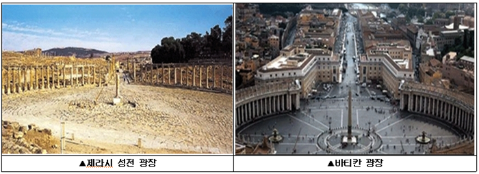더욱 결정적인 증거는 바티칸 광장이 주피터 신전과 아르테미스 신전을 중심으로 우상숭배를 일삼던 로마의 제라시 성전 광장과 그 형태가 동일하다는 사실입니다.