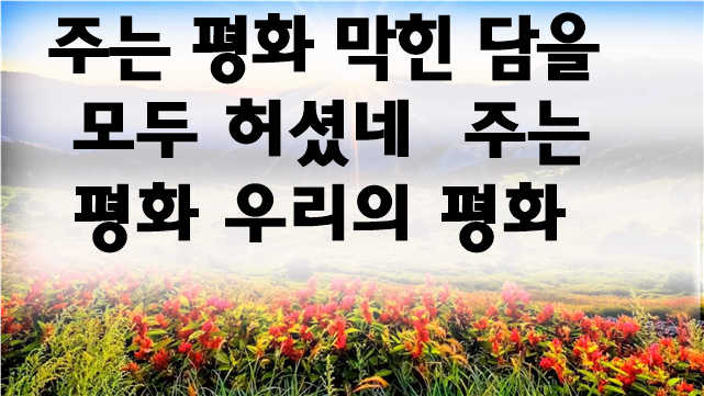 PPT 주는 평화 (가사만...) - 찬양 작성자초록들판|작성시간25.03.21|조회수71 목록 댓글 2 글자크기 작게가 글자크기 크게가 주는 평화.pptx646.16KB주는 평화E.hwp206.00KB 첨부파일첨부된 파일이 4개 있습니다. pptx 파일 주는 평화.pptx 다운로드 hwp 파일 주는 평화E.hwp 다운로드 png 파일 image.png 다운로드 jpg 파일 주는 평화E001.jpg 다운로드 다음검색 현재 게시글 추가 기능 열기 북마크 공유하기 신고 센터로 신고 댓글 댓글 2 댓글쓰기 답글쓰기 댓글 리스트 작성자이현채 | 작성시간 25.03.22 선한 눈을 가진 자는 복을 받으리니 이는 양식을 가난한 자에게 줌이니라(잠 22:9). 작성자별이야 운영자 | 작성시간 25.03.22 감사합니다. 댓글 전체보기
