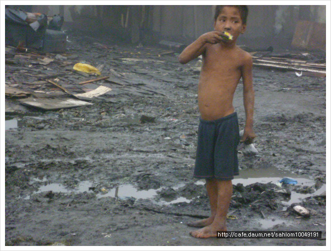 빈민촌 샌달없는 아이들에게 나누려
