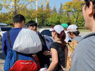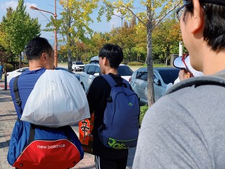 갈아입은 옷부터 대회에서 받은 기념품까지 저마다 짐이 한가득이었다.