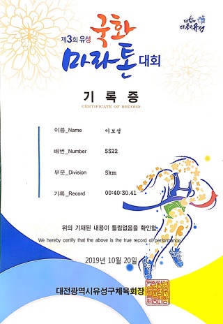 이보성, 여가(마라톤) 19-69, 제3회 유성 국화마라톤대회 ⑤ - 5km 완주