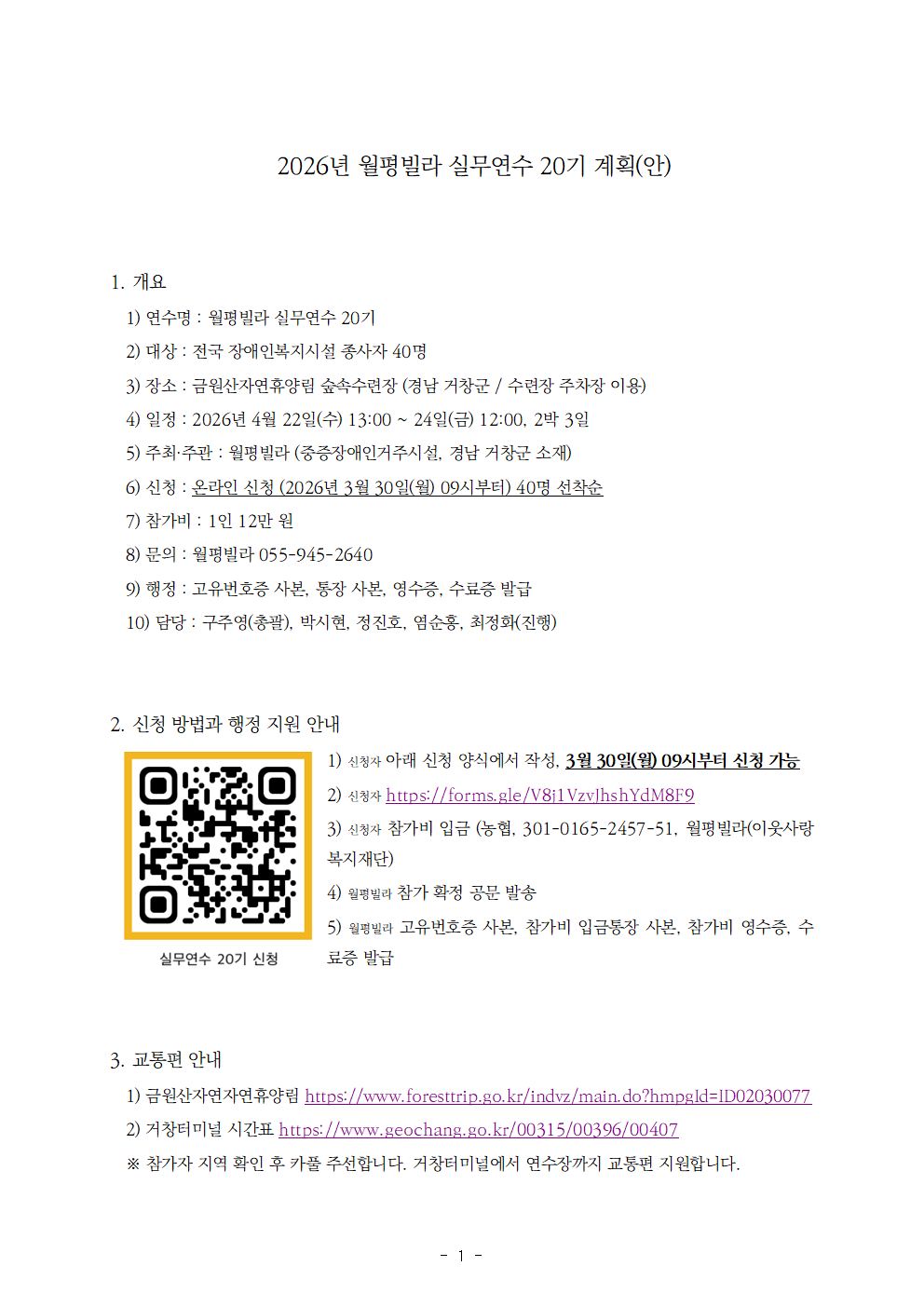 5) 주최·주관 : 월평빌라 (중증장애인거주시설, 경남 거창군 소재)