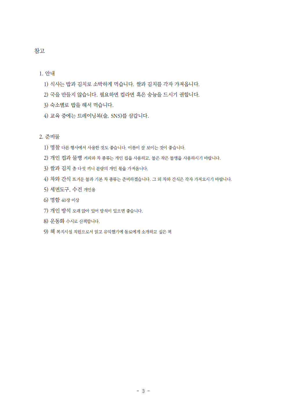 4) 교육 중에는 트레이닝복(술, SNS)를 삼갑니다.
