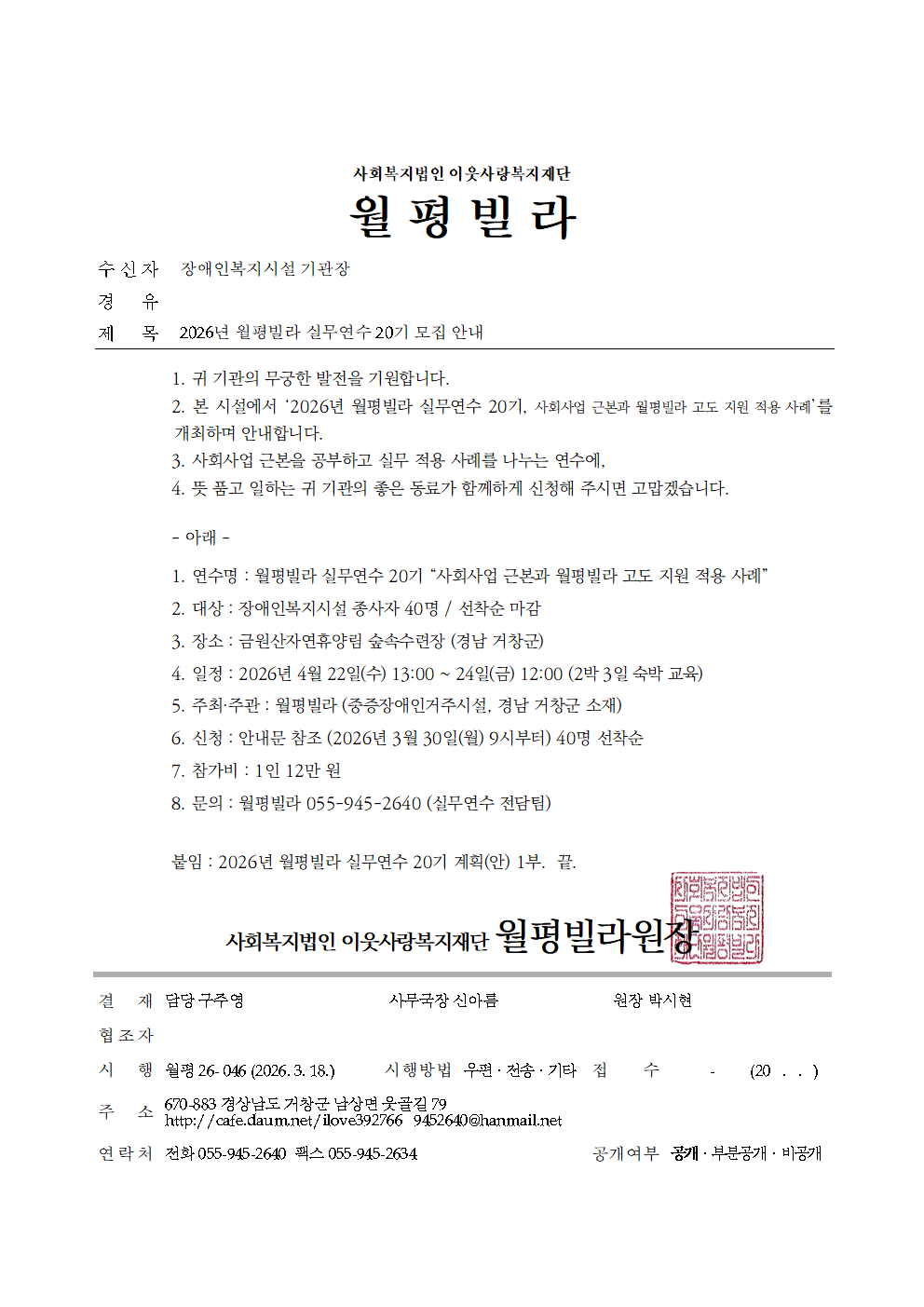 2026년 월평빌라 실무연수 20기_사회사업 근본과 월평빌라 고도 지원 적용 사례 신청