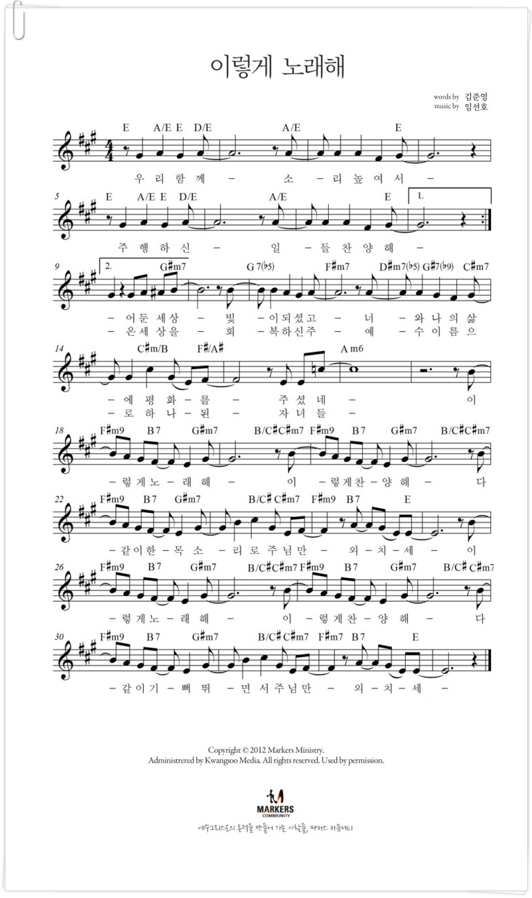마커스 이렇게 찬양해 찬양 / 악보 작성자소연아빠|작성시간12.07.01|조회수363 목록 댓글 0 글자크기 작게가 글자크기 크게가 다음검색 현재 게시글 추가 기능 열기 북마크 공유하기 신고 센터로 신고 댓글 댓글 0 댓글쓰기 답글쓰기 댓글 리스트
