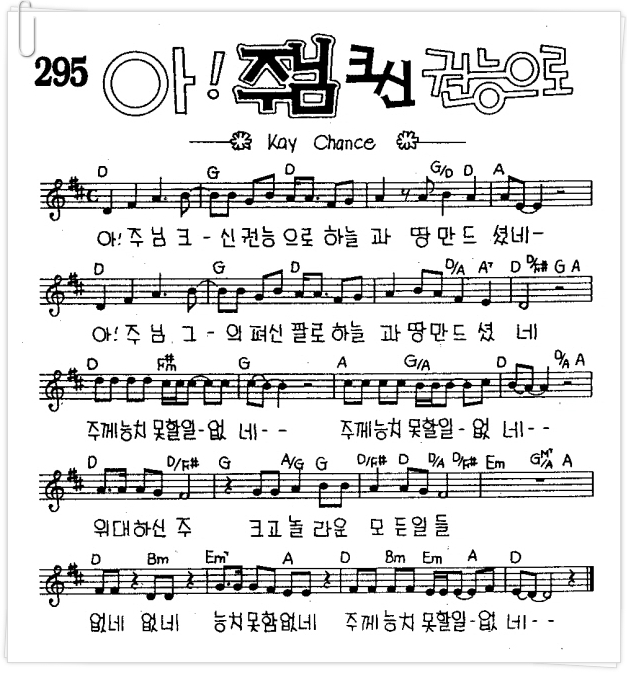 아 주님 크신 권능으로 하늘과 땅 만드셨네