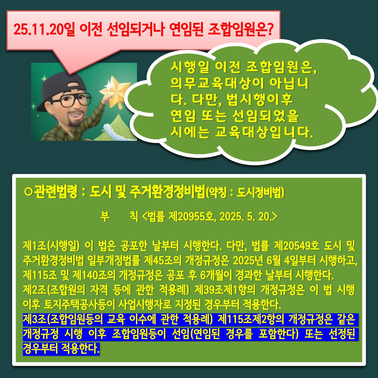 #도정법사랑모임 #도시정비교육연구센터 #박주훈소장 #재개발척척박사 #하루일기 #도시및주거환경정비법 #정비법개정 #25년정비법 #조합임원의무교육 #조합임원교육 #정비사업교육 #재개발 #재건축 #정비사업 #정비조합 #조합임원 #조합운영 #정비사업법률 #부동산정책 #도시정비 #정비사업개정 #과태료 #자격상실 #정비사업리스크 #조합임원책임 #정비사업정보 #재개발정보 #재건축정보 #정비교육 #도시정비교육