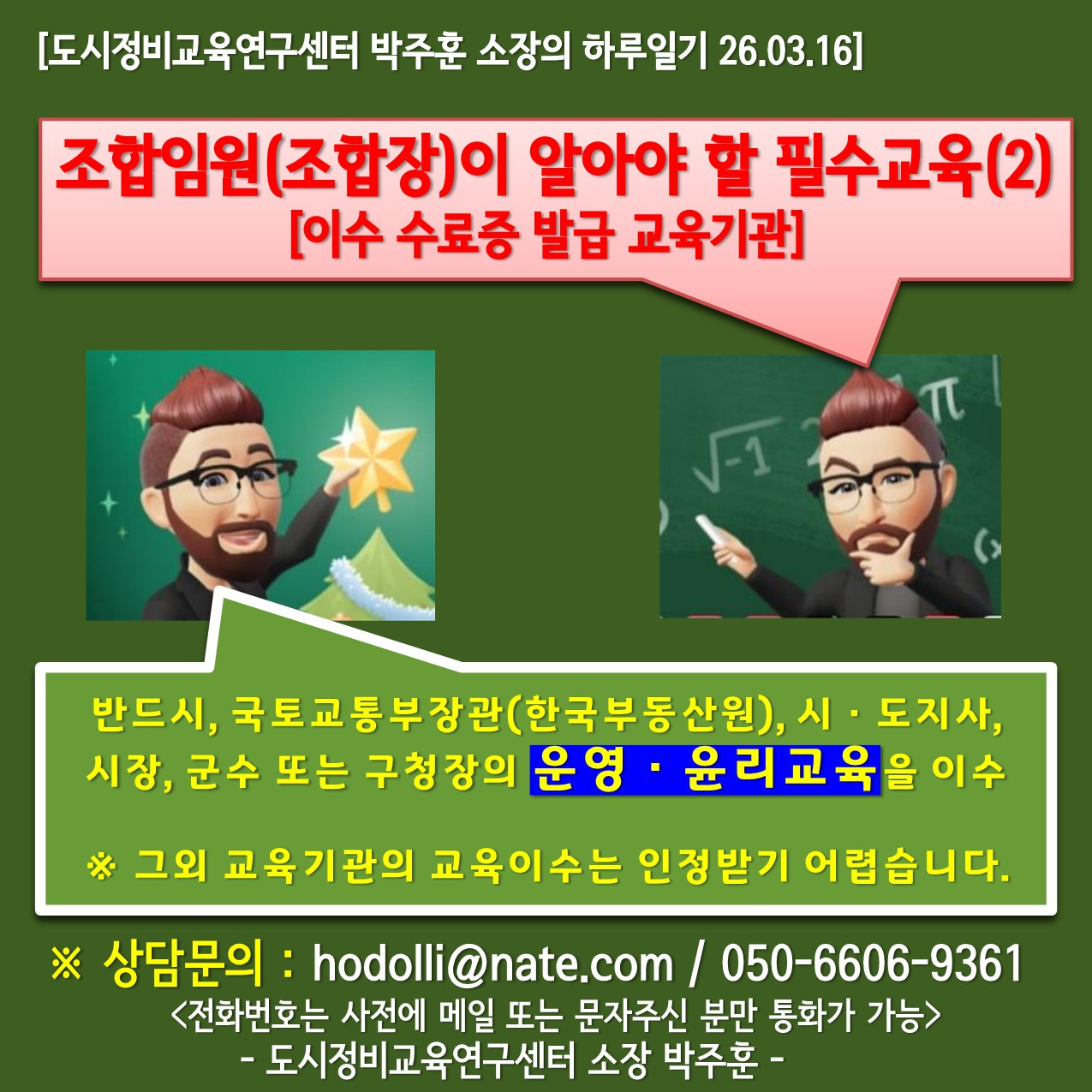 #도정법사랑모임 #도시정비교육연구센터 #박주훈소장 #재개발척척박사 #하루일기 #조합임원필수교육 #조합장교육 #도시정비사업 #재개발조합 #재건축조합 #정비사업교육 #조합운영교육 #조합윤리교육 #도시정비교육 #정비사업정보 #재개발정보 #재건축정보 #조합임원역할 #조합운영 #정비사업실무 #도시정비연구 #조합임원수료증 #정비사업전문가 #조합임원가이드 #도시정비교육연구센터 #조합임원필독 #정비사업지식 #조합교육정보 #재개발재건축교육