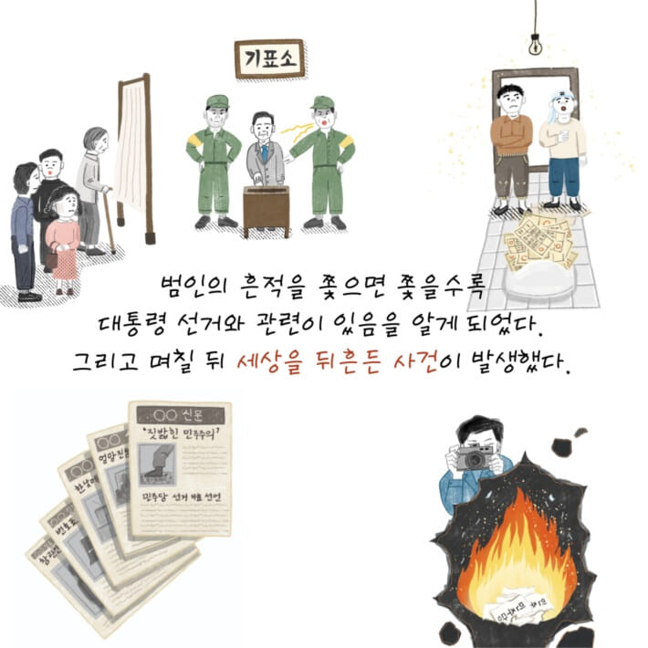 4·19 혁명은 시민과 학생이 중심이 되어 이승만 정부의 독재와 부정부패, 부정 선거에 항거해 일어난 민주 항쟁이에요. 1960년 4월 19일에 우리나라 곳곳은 “선거를 다시 하라.” “이승만은 물러가라.” 등의 구호로 몹시 뜨거웠어요. 거리마다 시민과 학생 들이 뛰쳐나와 이승만 독재와 3·15 부정 선거로 짓밟힌 민주주의를 바로 세우기 위해 목소리를 드높였지요. 거기, 그날, 그때를 함께한 영규, 홍철이, 말숙이를 통해 우리도 4·19 혁명의 열기 속으로 들어가 보아요.