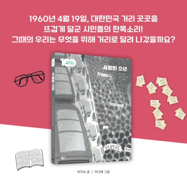 『4월의 소년』은 13살 어린이 영규, 홍철이, 말숙이, 삼총사가 4·19 혁명을 직접 겪으며 거리에서 만난 시민들, 정태 형, 현수 형, 신문 기자 아저씨, 중고등학생 언니 오빠의 모습 등을 생생히 담아낸 역사동화예요. 1960년대를 살다 간 시민들이 우리나라의 민주주의를 지키기 위해 얼마나 애썼는지 한눈에 알 수 있지요. 이승만과 자유당의 부정부패를 참다못해 일어선 우리 국민들의 용기와 희생, 그리고 정의로운 마음을 고스란히 느낄 수 있어요.