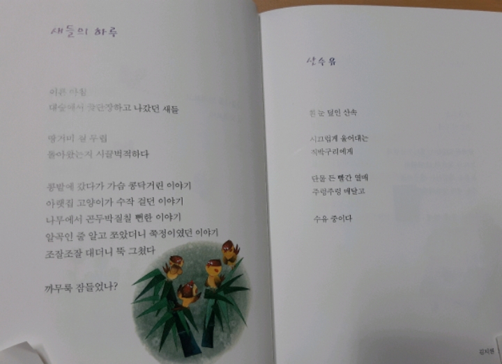 시간을 사고 싶다/단풍/비벼 먹은 겨울/하늘이 안아준다/첫 외출/새들의 하루/산수유