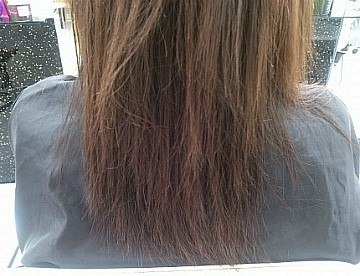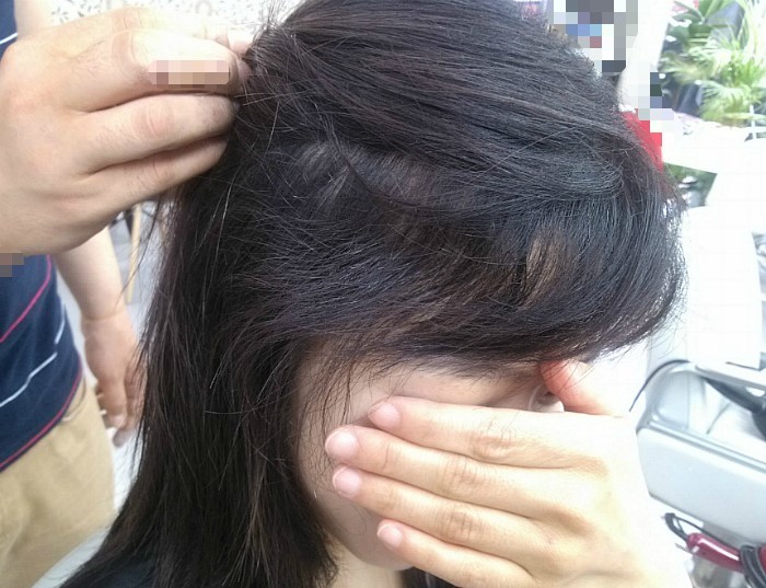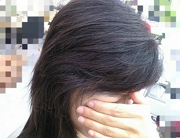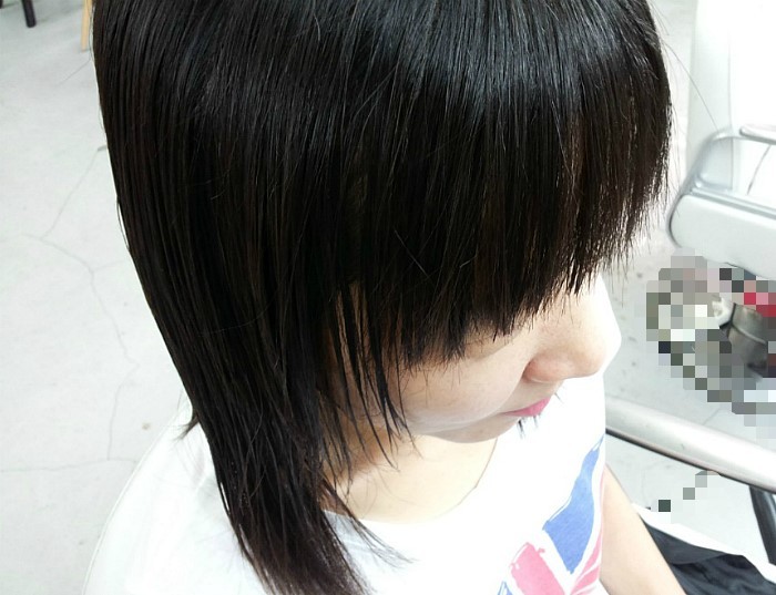 처음에는 숱없는 머리에 상한 머릿결이 부끄러운지