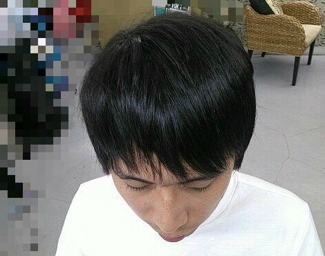 모발손상까지 있는 남자 곱슬머리 헤어스타일 입니다.