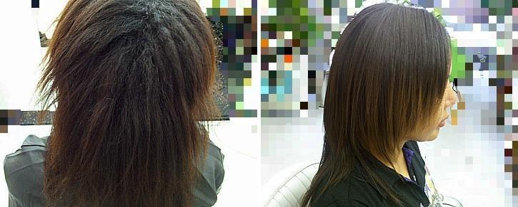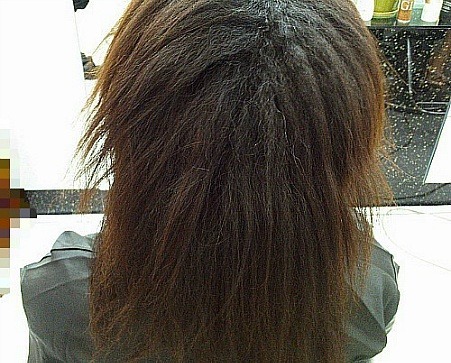 곱슬을 펴다보니 곱슬이 끊어질 정도로 모발 손상도 심각합니다.