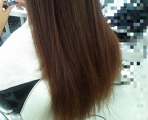 컬러체인이[블랙빼기]한 염색모에 매직후 타고 녹은 상한머리를