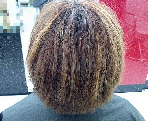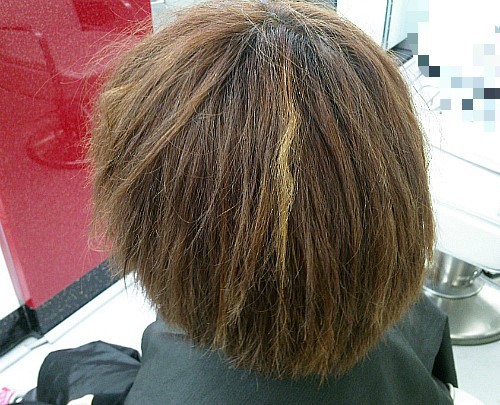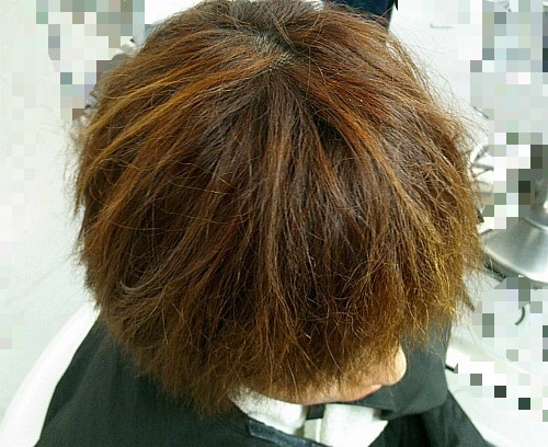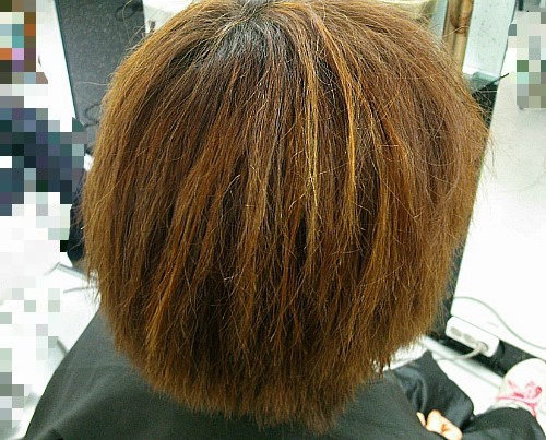 탈색과 염색후 잘못된 파마로 머리를 망친 경우입니다.