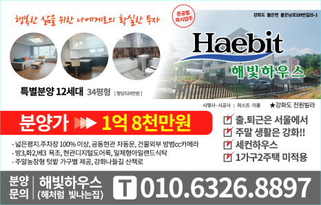 강화군 불은면 오두리 안산마을 해빛하우스를 추천합니다.
