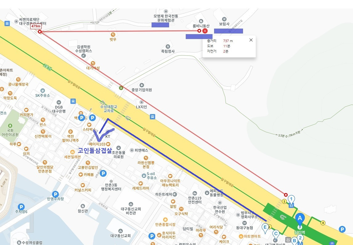 - 뒷풀이 고인돌삼겹살 (담티역 2번출구 도보 5분)