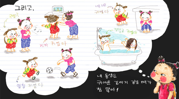 - 때로는 얄밉지만 때로는 귀엽고 친구 같은 동생에게 느끼는 누나의 심리 잘 표현.