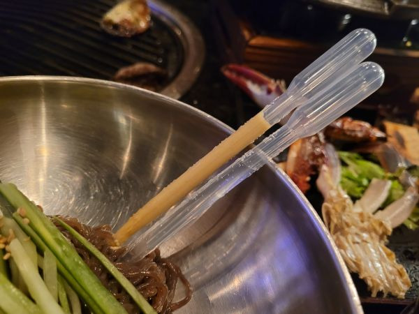 냉면에 겨자 식초도 작은 스포이드에 꽂아 나온다. 처음 봤다. 신기하고 재밌다.