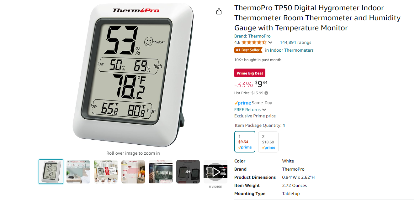 먼저 실내 습도 모니터 입니다. 아마존이나 이베이 온라인에서 쉽게 구입 가능합니다.