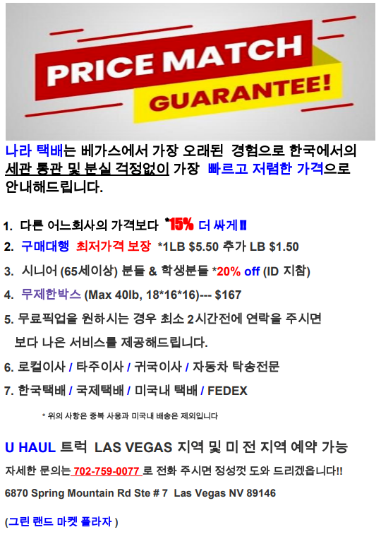 (타 회사 가격 MATCH 서비스/ 15% 더 디스카운트/한국택배)귀국이사짐/로컬이사/미전역U-HAUL트럭예약/ FEDEX(미전지역)