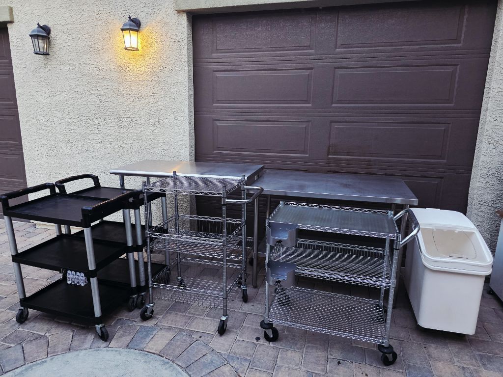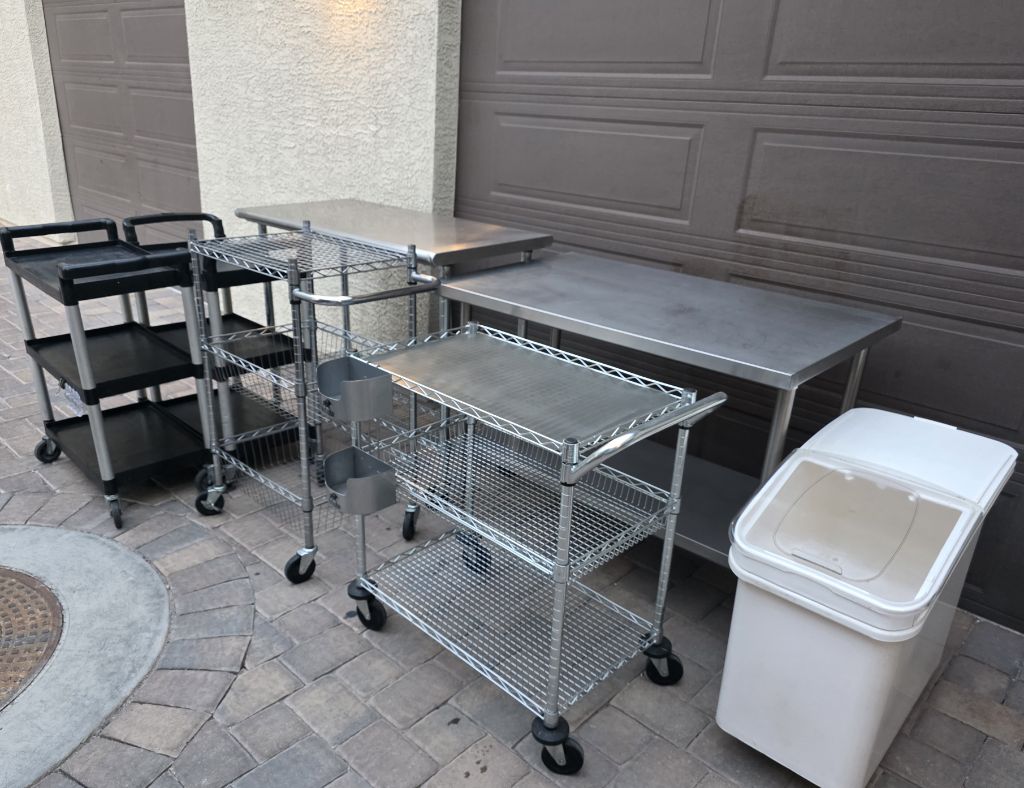 Stailess steel 주방 아일랜드, 카트들, 컨테인너들, 쌀통 사진에 있는거 전부 다해서 $650불에 팝니다. (NSF)