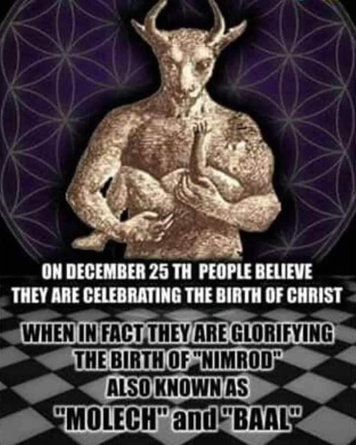 12월 25일은 바빌론의 태양신의 날이다. 12월 21일은 동지로, 지구가 태양의 영향력에서 가장 멀어지는 날이며, 24일부터 태양의 영향력은 커지기 시작한다. 태양신을 숭배하는 자들은 여기에 생명이 다시 돌아온다는 의미를 부여했는데, 바로 이러한 믿음으로 태양신인 바알의 생일이 12월 25일이 되었다.
